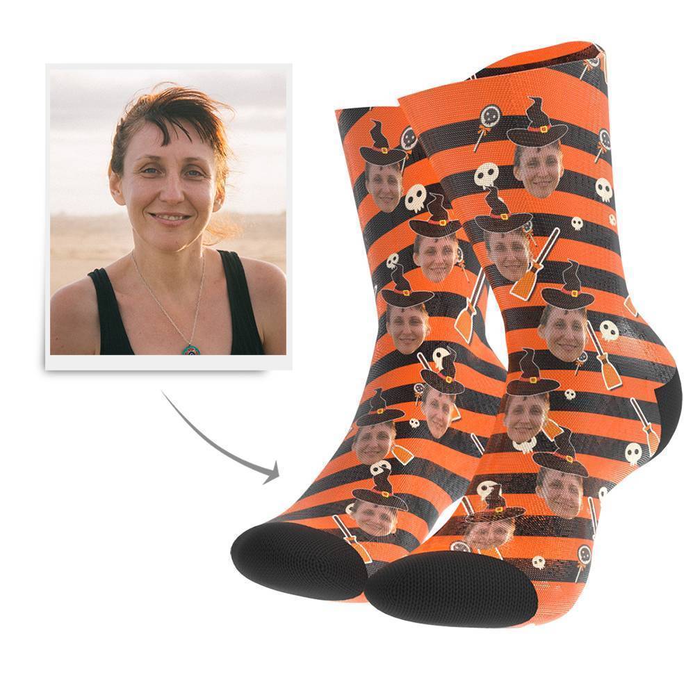 Halloween Hexe Personalisierte Gesicht Socken Bedrucken mit Foto