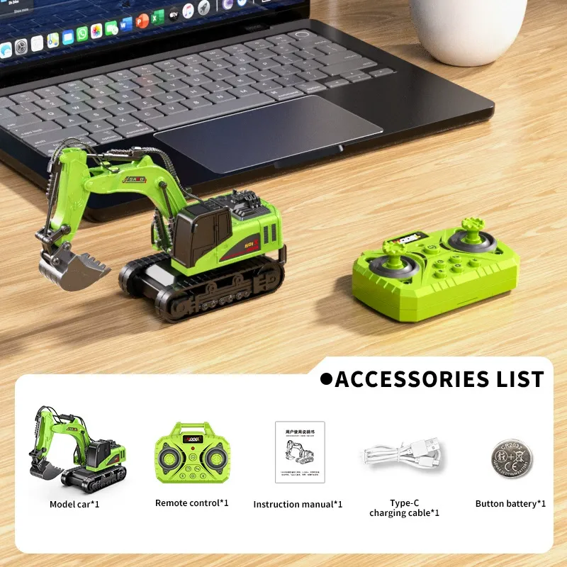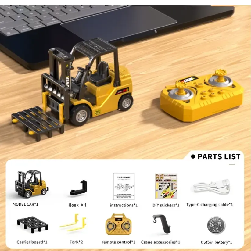 1:64 Bluetooth Desktop Mini-rc-baustellenmodell-spielzeugset Aus Legierung – Gabelstapler, Kran (mit Palette), Muldenkipper Und Bagger