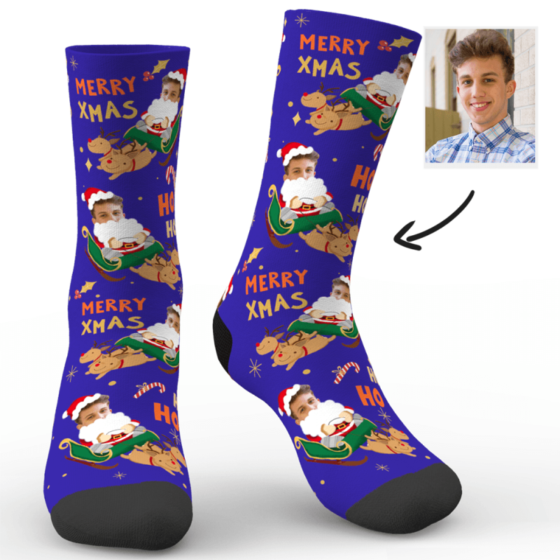 Weihnachts Socken Weihnachtsgeschenk Foto Socken Personalisiert Gesicht Socken Name Socken Weihnachtsmann & Elch