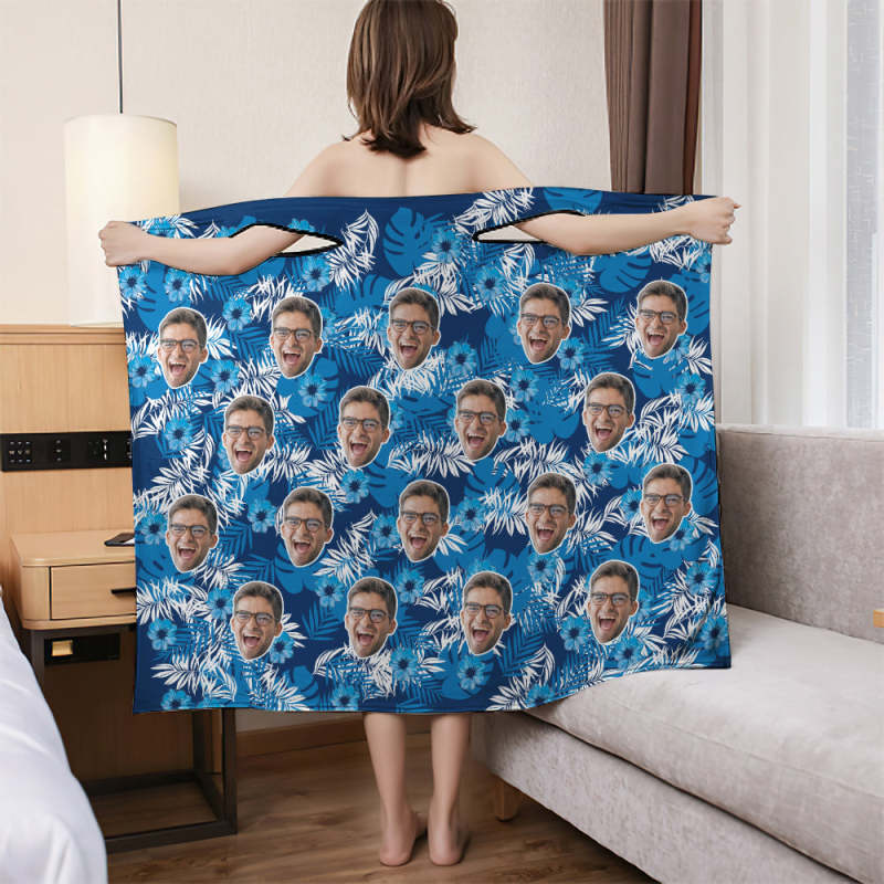 Benutzerdefinierte Badetuch Mode Bad Kleid Hause Bademäntel Weicher Und Saugfähiger Bademantel Blaue Blätter
