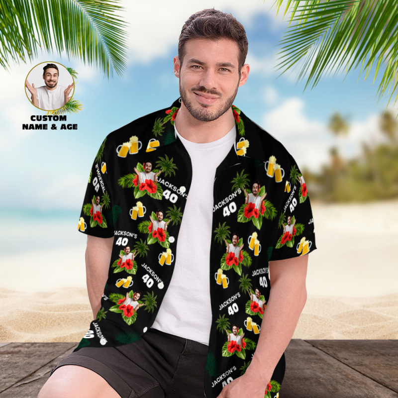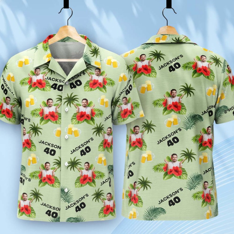 Individuelles Geburtstagsshirt Mit Gesichtern, Hawaii-shirt Mit Text, Geburtstagsparty-shirt Für Männer, Geburtstagsgeschenke
