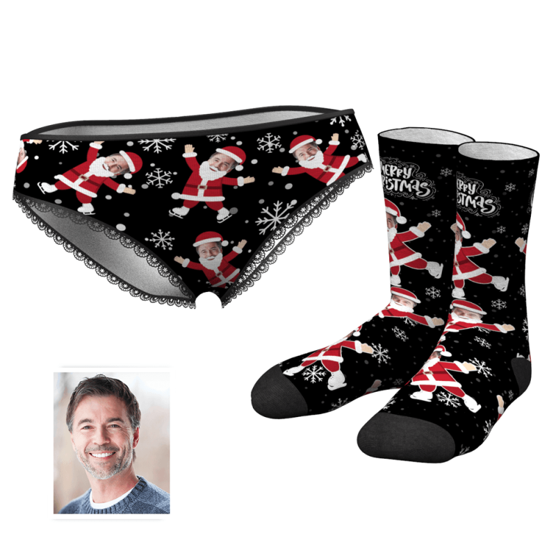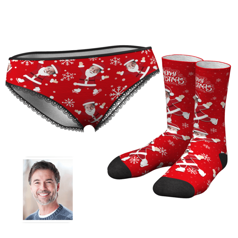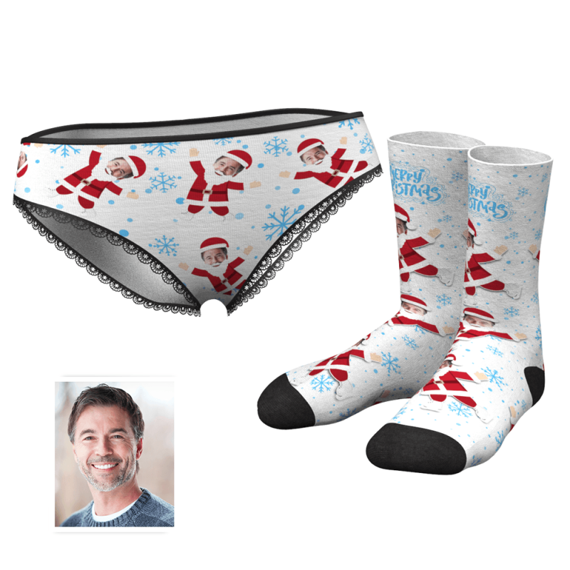 Foto Socken Gesicht Socken Herz Frohe Weihnachten Höschen Socken Gedruckt Gesicht Liebhaber Set - Bestes Geschenk für Liebhaber