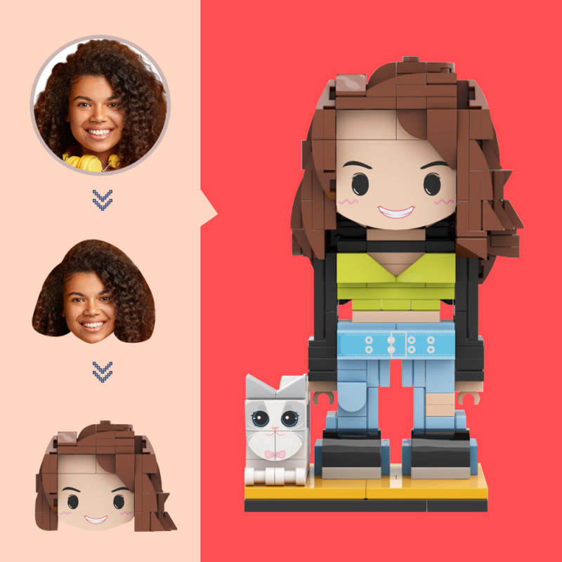 Benutzerdefinierte Ziegelfigur Mit Einer Kleinen Katze Benutzerdefinierte Kopffiguren Kleines Partikelblockspielzeug Anpassbare Ziegelkunstgeschenke