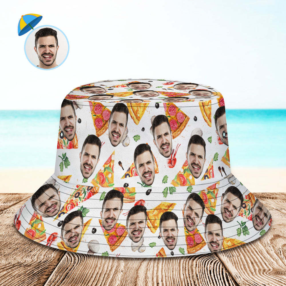 Benutzerdefinierte Bucket Hat Personalisieren Gesicht Pizza Bucket Hat Sommer Wide Brim Fisherman Hat Gifts