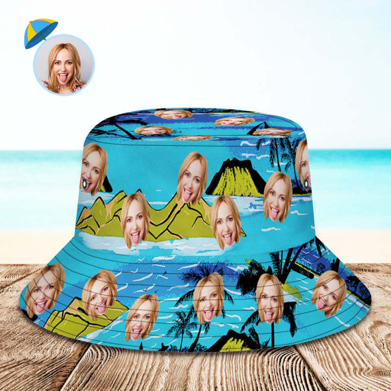 Benutzerdefinierter Fischerhut Mit Personalisiertem Gesicht Und Tropischem Blumendruck, Hawaiianischer Fischerhut – Vice City