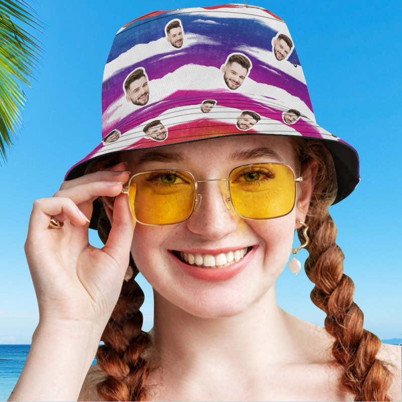 Benutzerdefinierter Eimerhut, Unisex-gesichtseimerhut, Personalisierbar, Breite Krempe, Outdoor-sommermütze, Wandern, Strand, Sporthüte, Batik-mehrfarbig