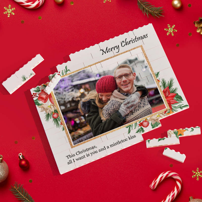 Benutzerdefiniertes Baustein-puzzle, Horizontaler Trio-fotostein, Frohe Weihnachten
