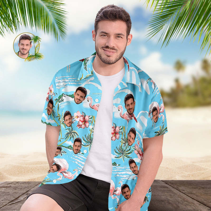 Autofoto Hochladen Individuelles Foto Hawaiihemd Herren-allover-print-aloha-shirt-geschenk – Rosa Flamingos Und Blumen