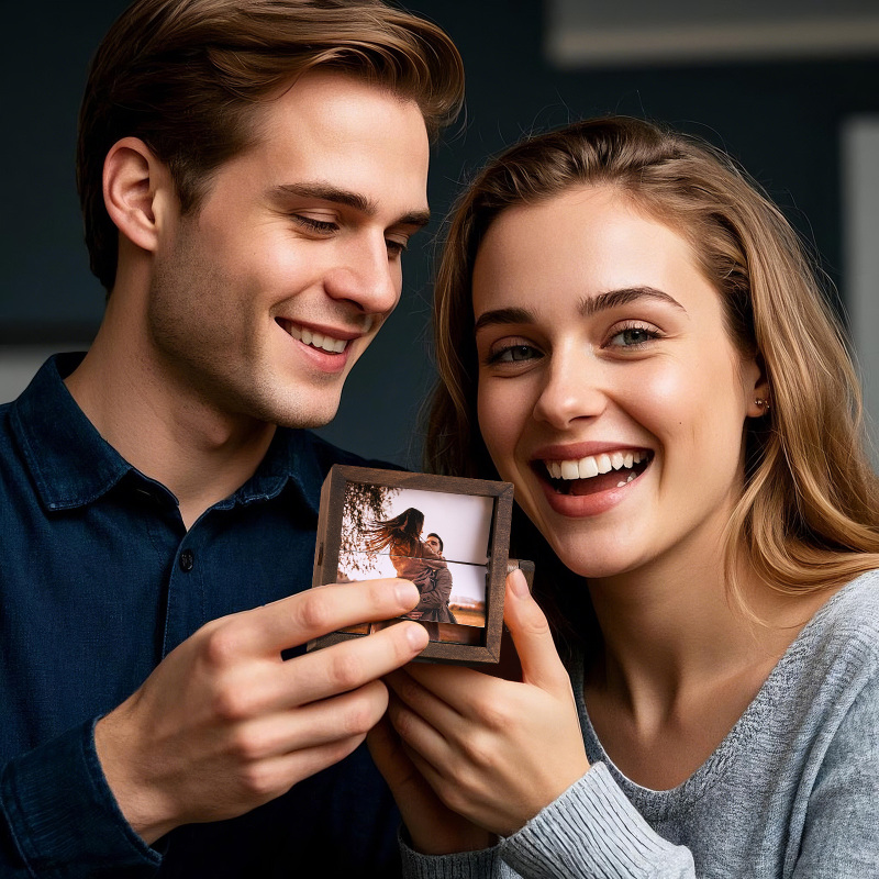 Personalisierter Kreativer Baby-erinnerungswürfel, Personalisierbarer Handgedrehter Flipbook-rahmen Aus Walnussholz Mit Led-beleuchtung, Geschenk Für Mutter