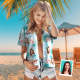 Hawaii-hemden Mit Individuellem Gesicht Und Zahlen Zum Geburtstag, Rote Und Weiße Kokosnussbaum-blaugrün-hemden