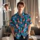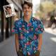 Hawaiihemd Mit Individuellem Gesicht. Hawaiihemd Mit Nummer Und Gesicht, Dunkelblauen Ärmeln Und Rosa Blumen