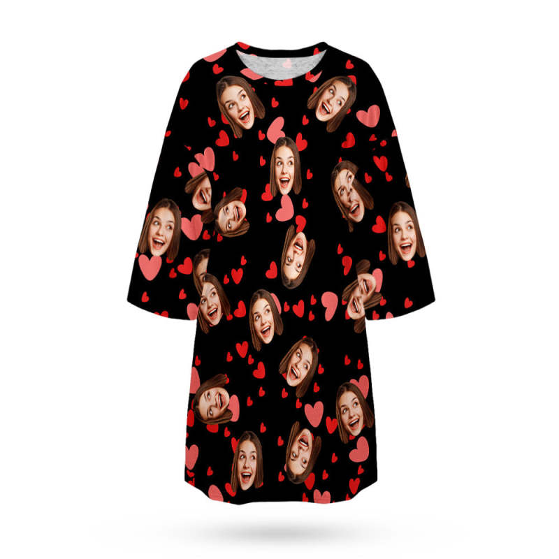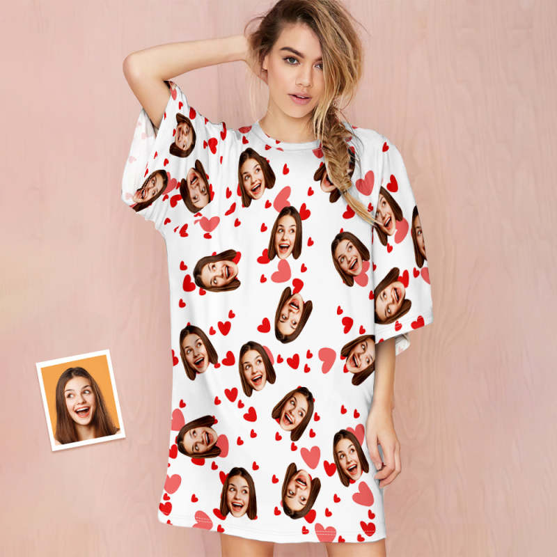 Benutzerdefiniertes Gesicht-nachthemd, Personalisiertes Foto, Übergroßes Damen-nachthemd, Rotes Herz, Geschenke Für Sie