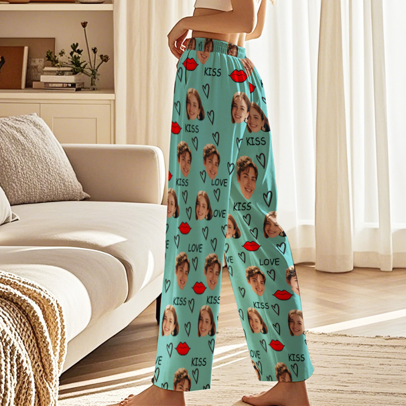 Benutzerdefinierte Gesichts-pyjama-hose, Personalisierte Kuss-pyjama-hose, Valentinstagsgeschenke