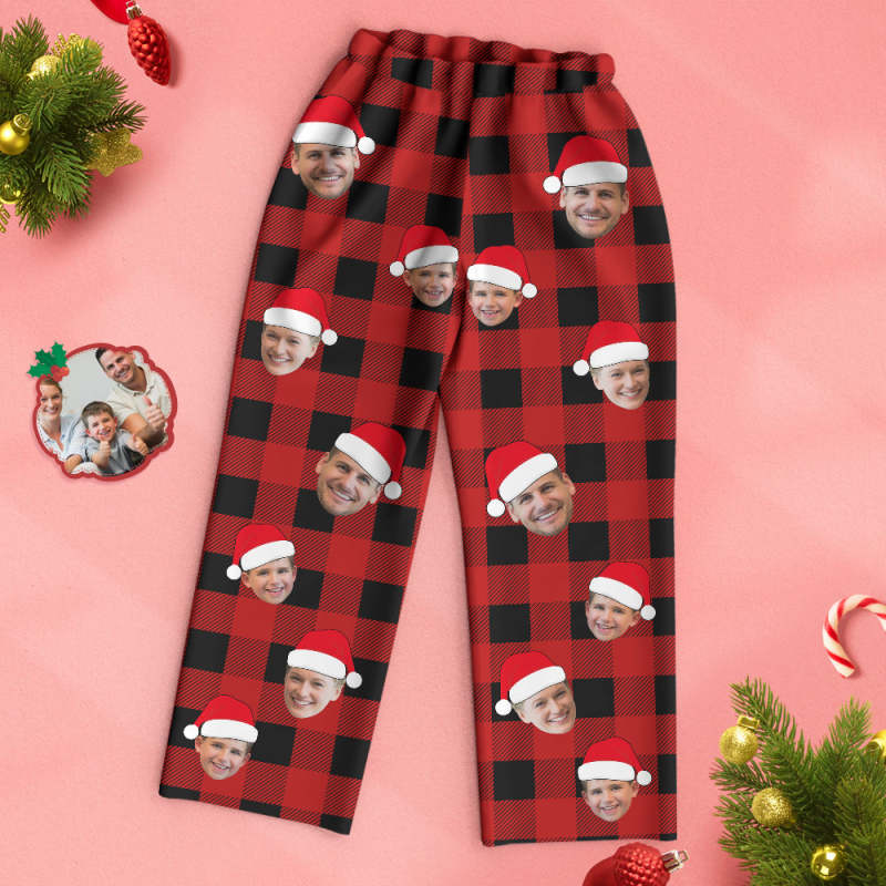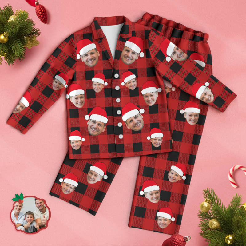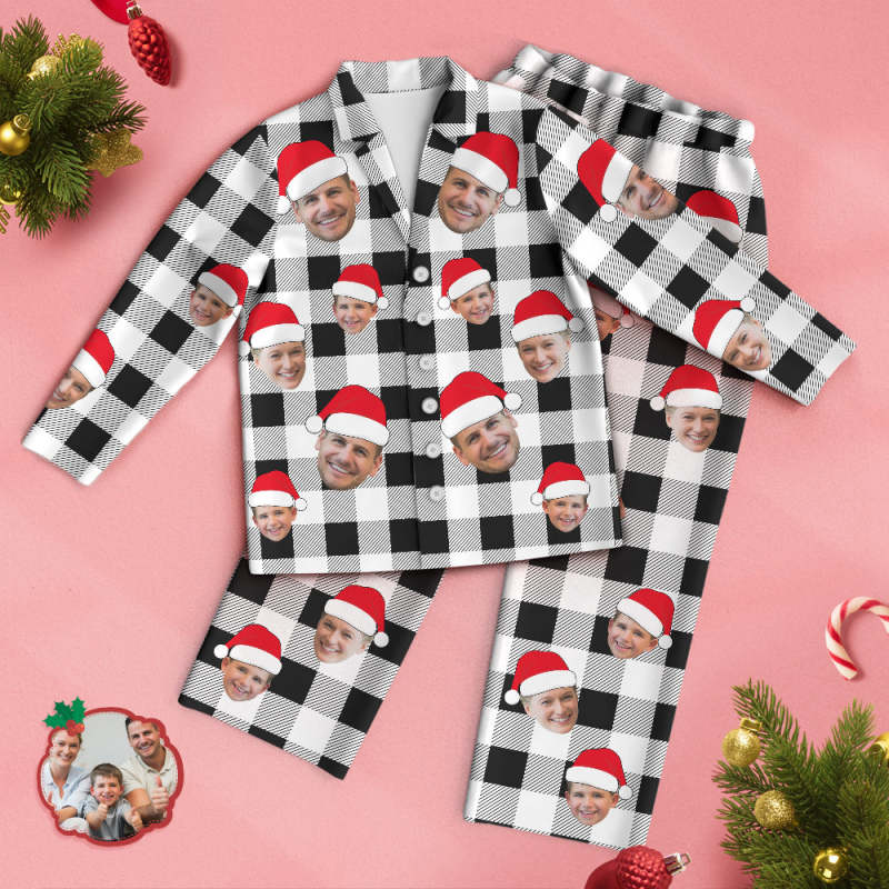 Benutzerdefinierter Gesichts-pyjama, Personalisiertes Foto, Weihnachts-familien-büffel-karo-pyjama