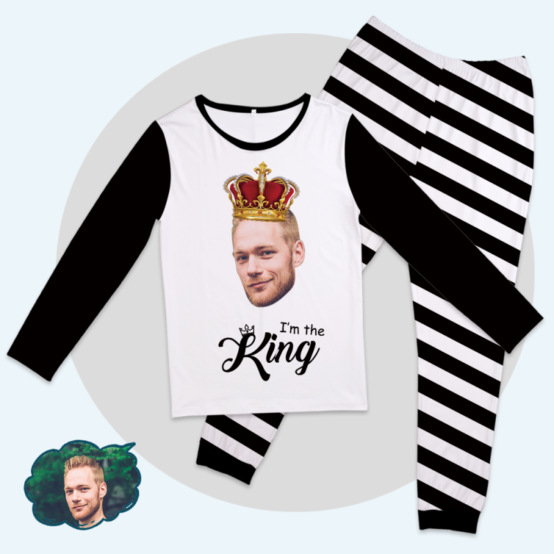 Benutzerdefiniertes Gesichts-pyjama-set. Passende Pyjamas Für König Und Königin – „ich Bin Der König“.