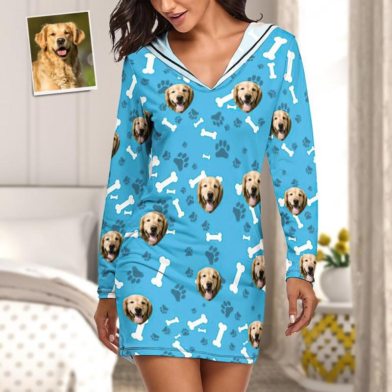 Benutzerdefinierte Gesichtspyjamas Damen-pyjama-sets Langarmkleid Sommernachtwäsche - Hund