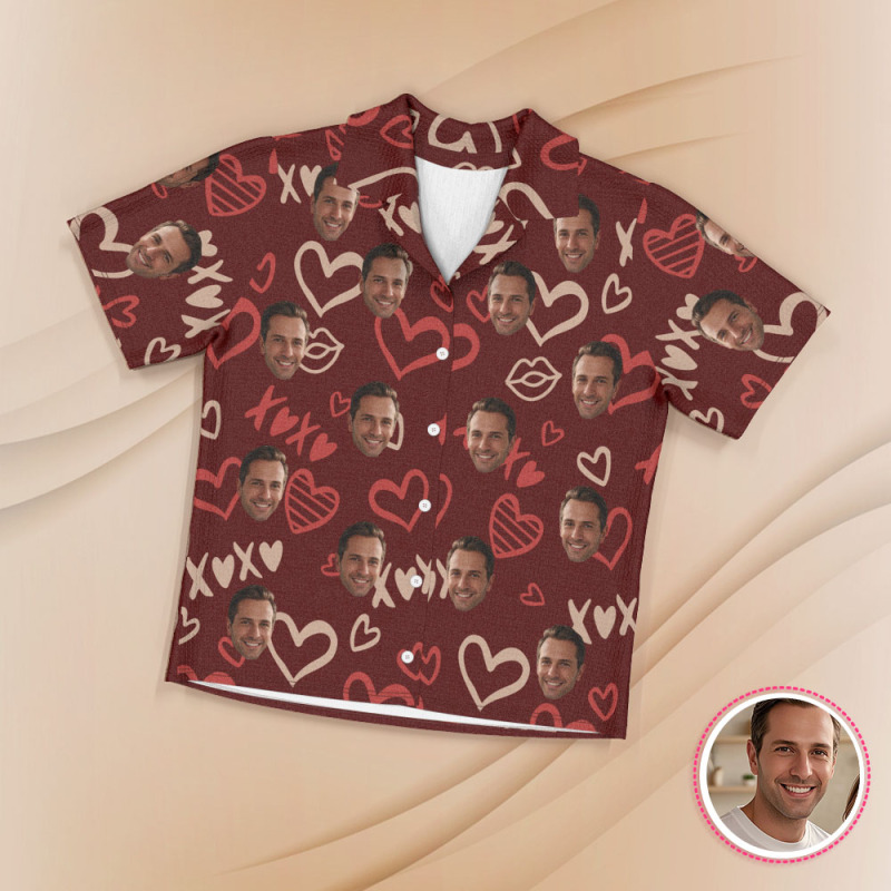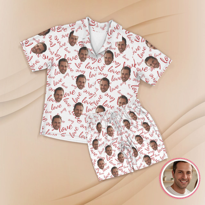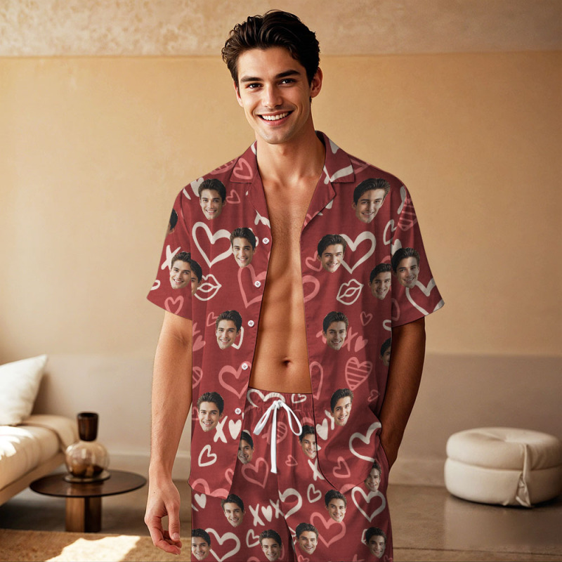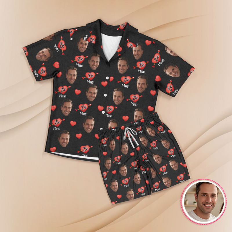 Kurzärmliger Pyjama Mit Individuellem Gesicht, Personalisierter Paar-pyjama, Be Mine-nachtwäsche