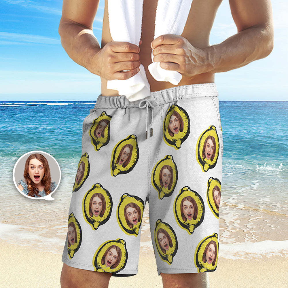 Benutzerdefinierte Gesichts-badehose Im Zitronen-stil, Personalisierte Strandshorts Mit Foto