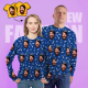 Benutzerdefiniertes Gesicht Unisex Sweatshirt Lässiges Bedrucktes Foto Blaues Rundhalsshirt Für Männer Frauen – Glücklicher Vater
