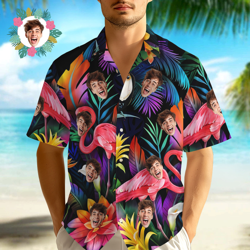 Benutzerdefiniertes Flamingo-blumen-hawaii-hemd, Individuelles Gesichts-shirt