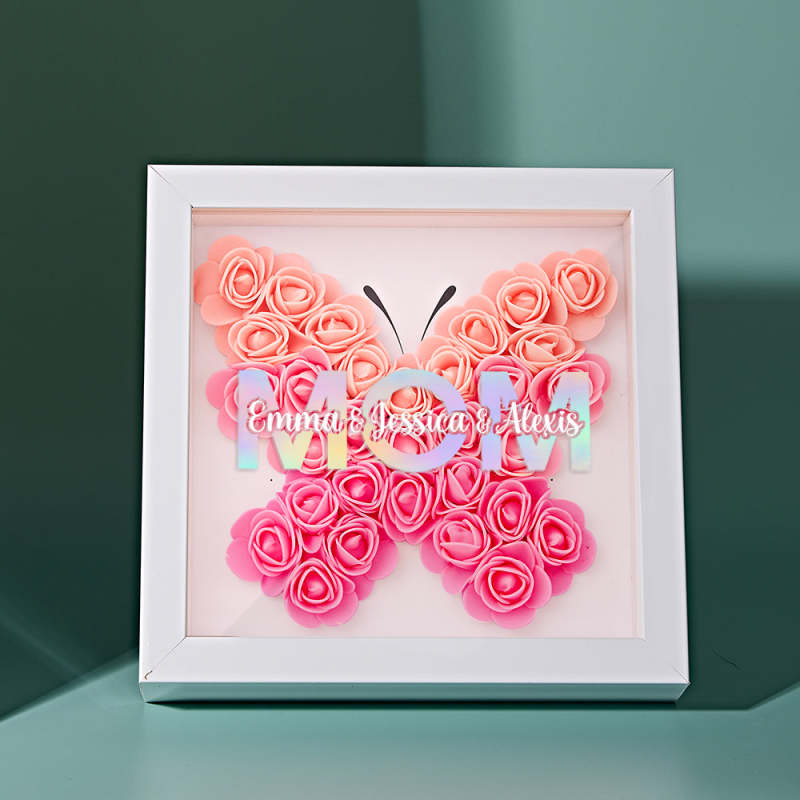 Individuell Gestalteter Blumen-schattenbox-rahmen Mit Namen – Muttertagsgeschenk