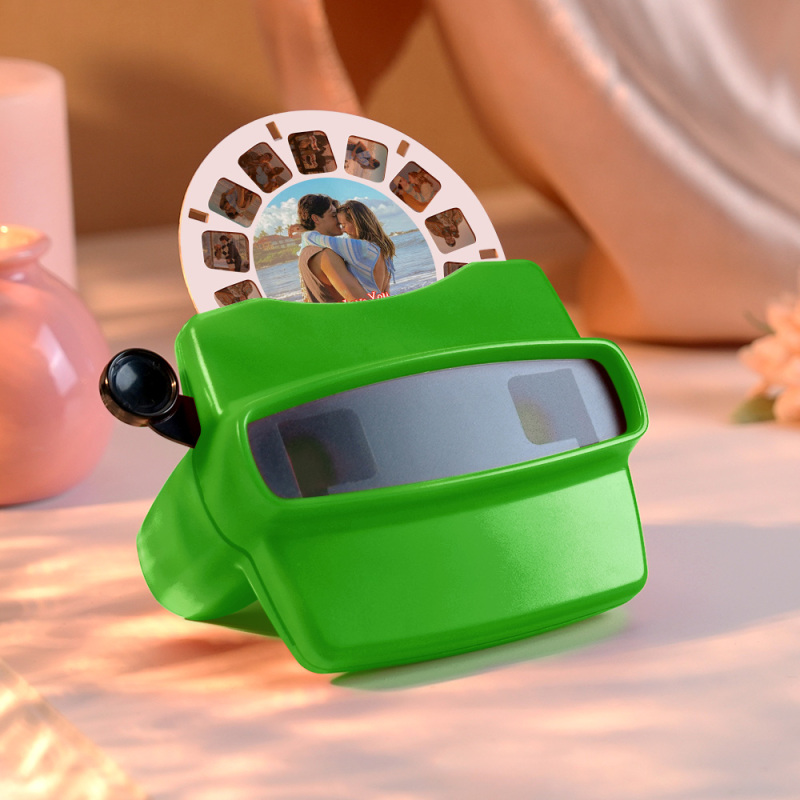 Benutzerdefinierter Grüner 3d-sucher Und Spule – Personalisiertes Weihnachtsgeschenk Mit Ihren Eigenen Fotos, Text- Und Fotobetrachter, Mehrere Filme Verfügbar, Geschenke Für Die Familie