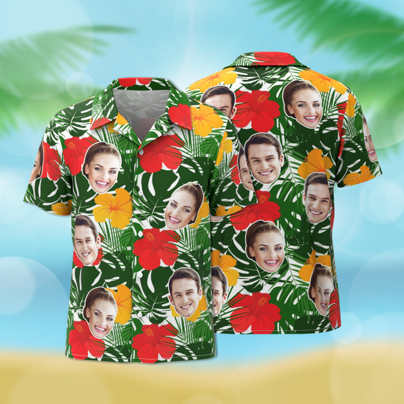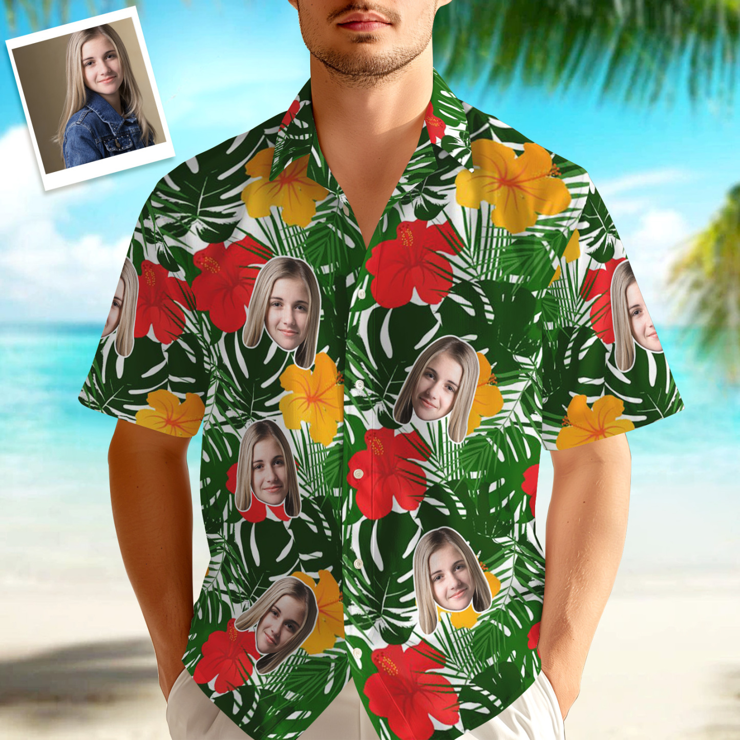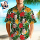 Benutzerdefiniertes Hawaii-hemd, Tropisches Blumen-hawaii-hemd, All-over-print-gesicht, Rote Blume, Grüne Blätter-hemd