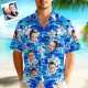 Benutzerdefiniertes Hawaii-hemd Tropisches Blumen-hawaii-hemd All Over Print-gesicht Weißes Blumen-blau-hemd