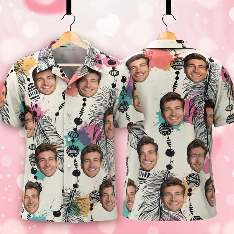 Benutzerdefinierte Hawaiihemden Weiß Tropical Dreamcatcher Print Spaß Personalisierte Party Shirt