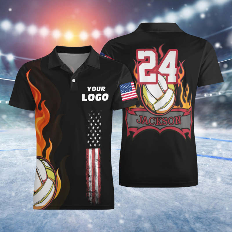 Kurzarm-poloshirt Mit Individuellem Logo Und Text, Poloshirt Mit Amerikanischer Flagge, Bester Volleyball