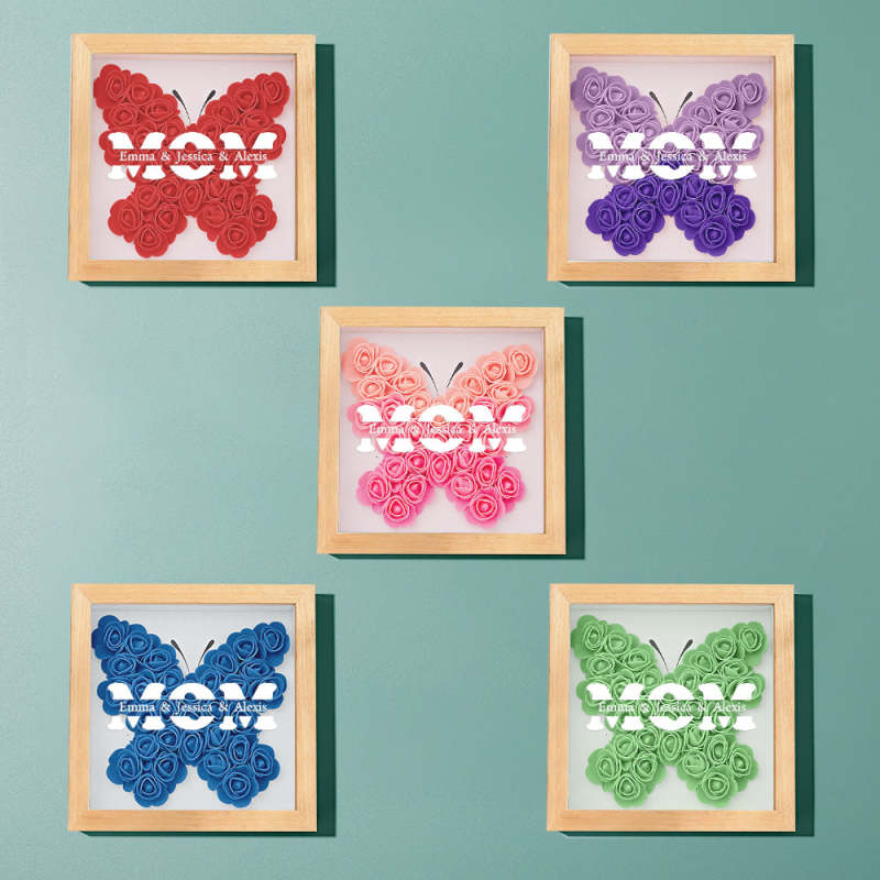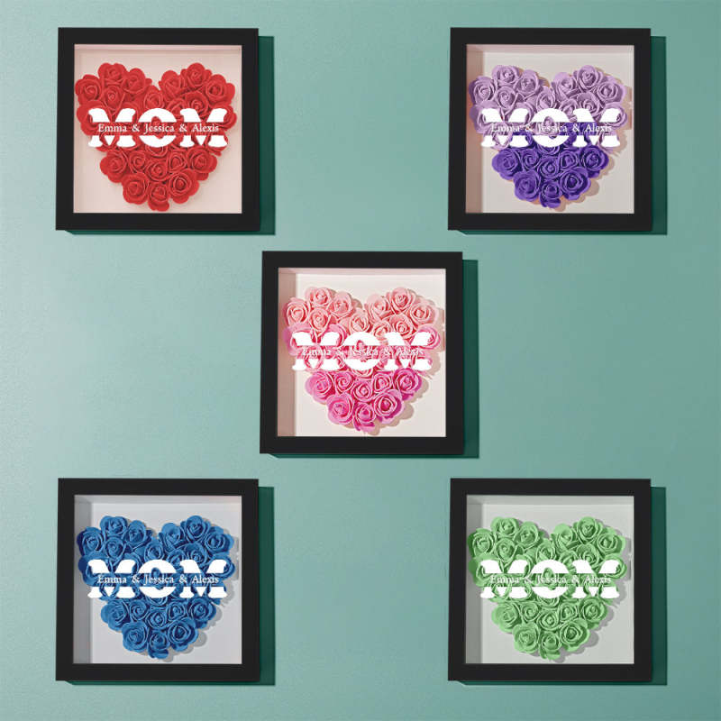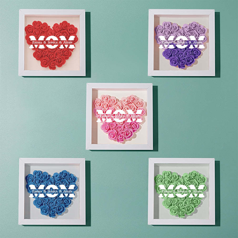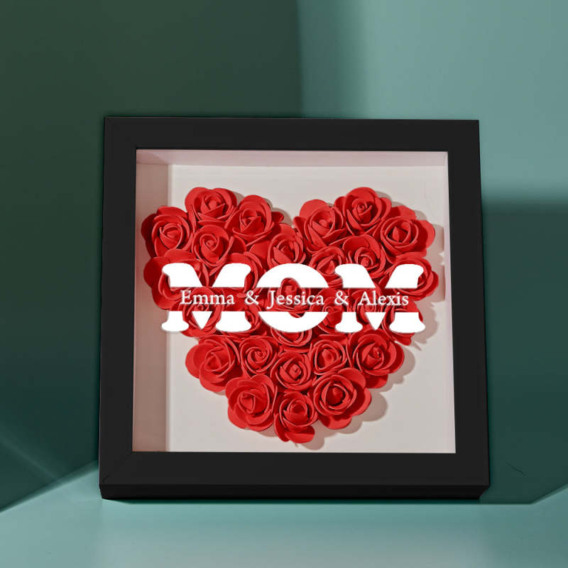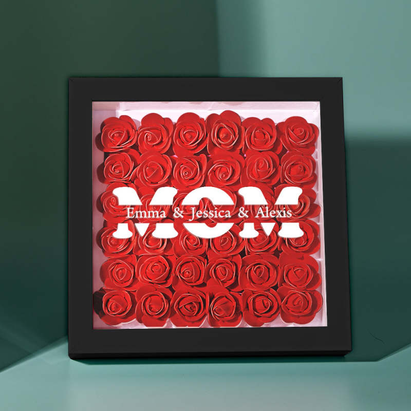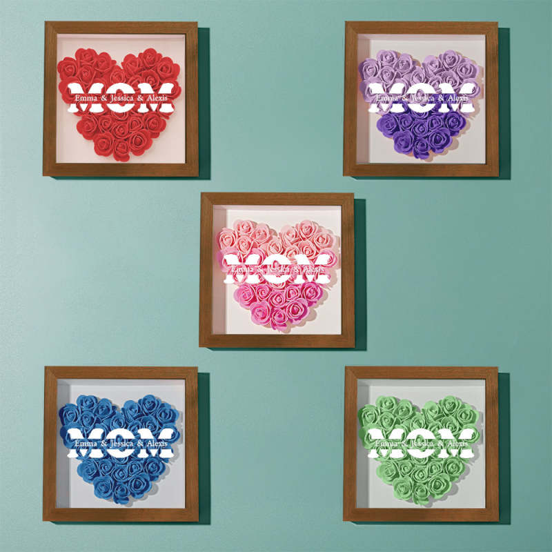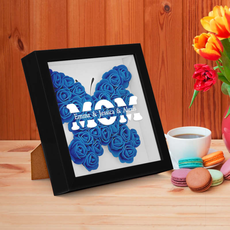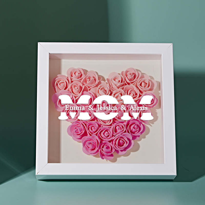 Personalisierter Blumen-schattenbox-bilderrahmen Mit Namen – Muttertagsgeschenk