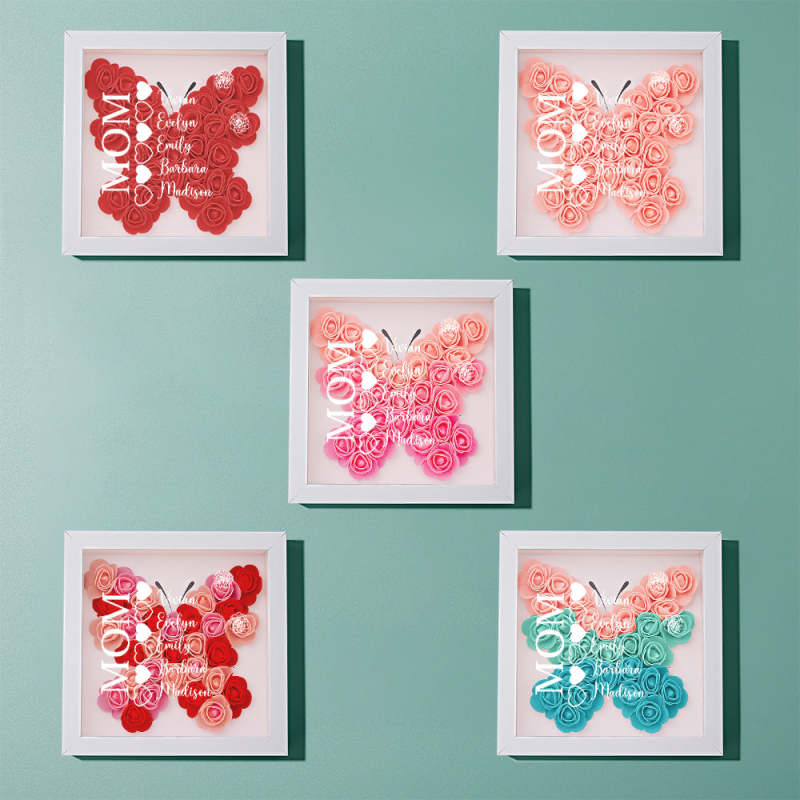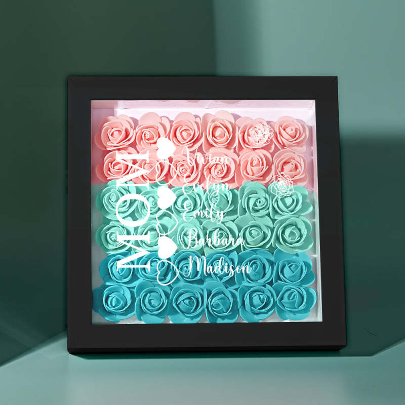 Personalisierter Blumen-schattenkasten Mit Namensaufdruck, Herz-blumen-schattenkastenrahmen, Muttertagsgeschenk