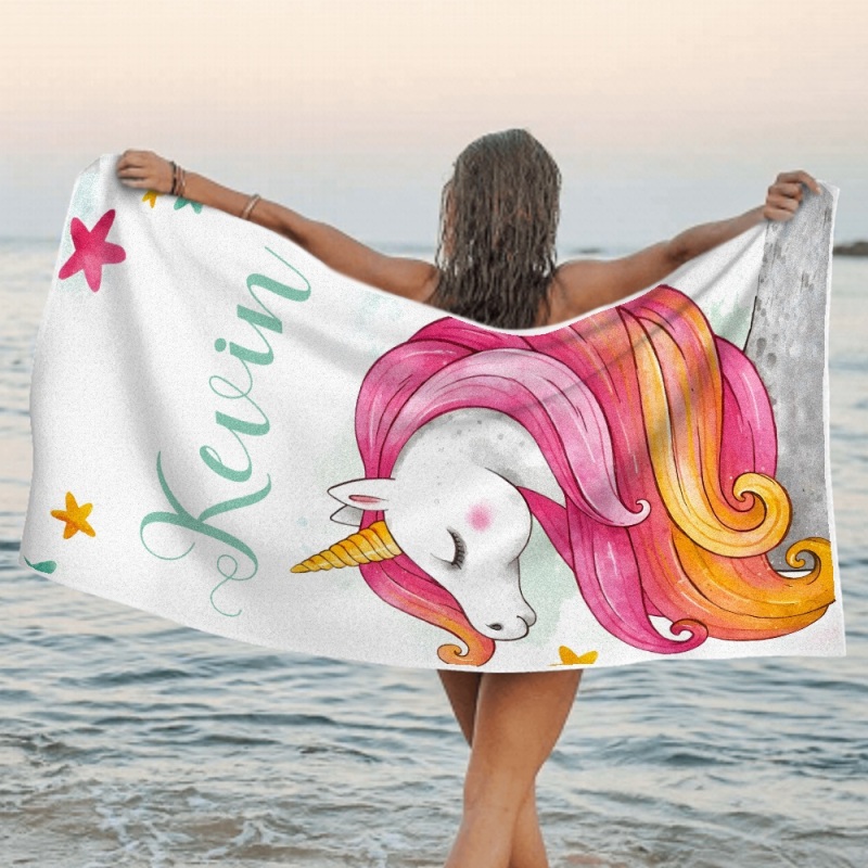 Benutzerdefinierte Personalisierte Strandtuch Cartoon Einhorn Geschenk Für Kind
