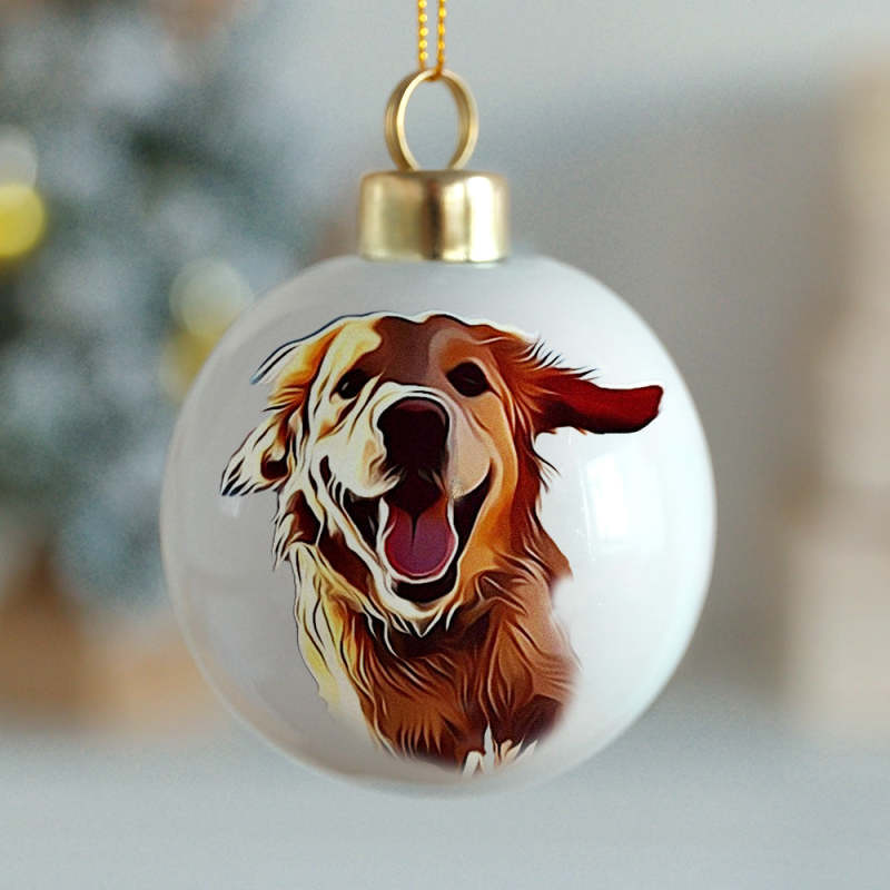 Personalisierte Haustier-gesichtsporträt-ornamente Im Kunstvoll Bedruckten, Handgemalten Aquarell-stil, Individuelles Weihnachtsgeschenk