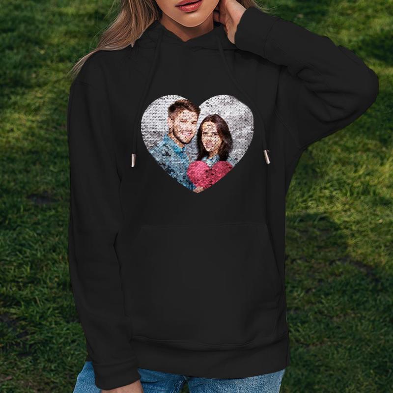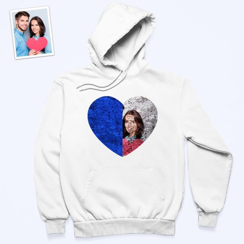 Benutzerdefiniertes Foto Blauer Pailletten-hoodie-herz-doppeldruck-hoodie-geschenk Für Männer Frauen