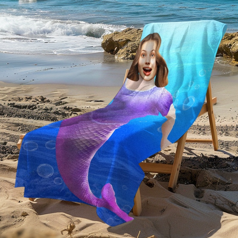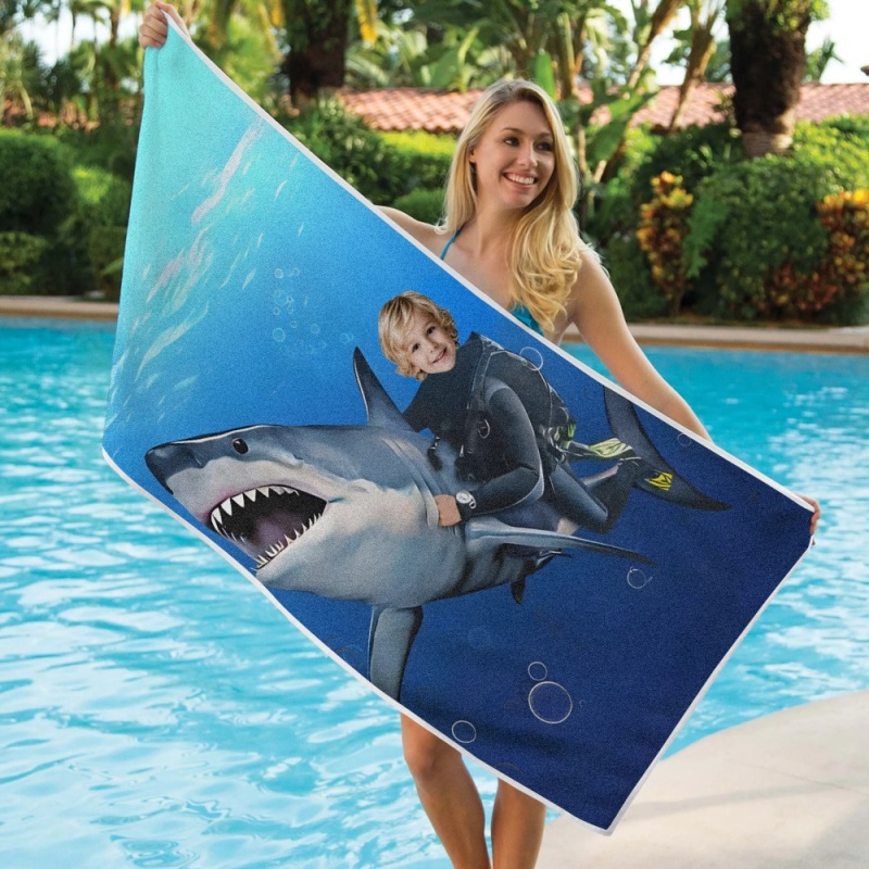Strandtuch Mit Individuellem Foto Und Gesicht, Personalisierbar, Hai, Bestes Geschenk Für Kinder