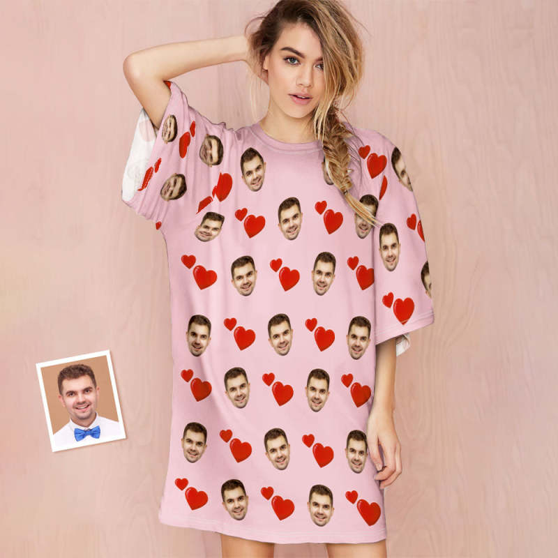 Benutzerdefiniertes Nachthemd Mit Fotogesicht, Personalisiertes Damen-nachthemd In Übergröße, Herz-design-geschenke