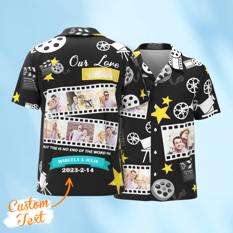 Benutzerdefinierte Foto Hawaiihemden Unsere Liebe Film Shirts mit 3-6 Fotos Button-down-Shirts Geschenke für ihn
