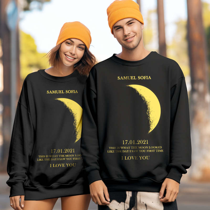 Personalisiertes Mondphasen-unisex-sweatshirt Mit Rundhalsausschnitt, Personalisierte Namen, Rundhals-sweatshirt, Valentinstagsgeschenke Für Paare