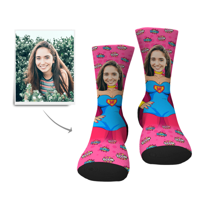 Personalisierte Dein Superfrau Gesicht Socken