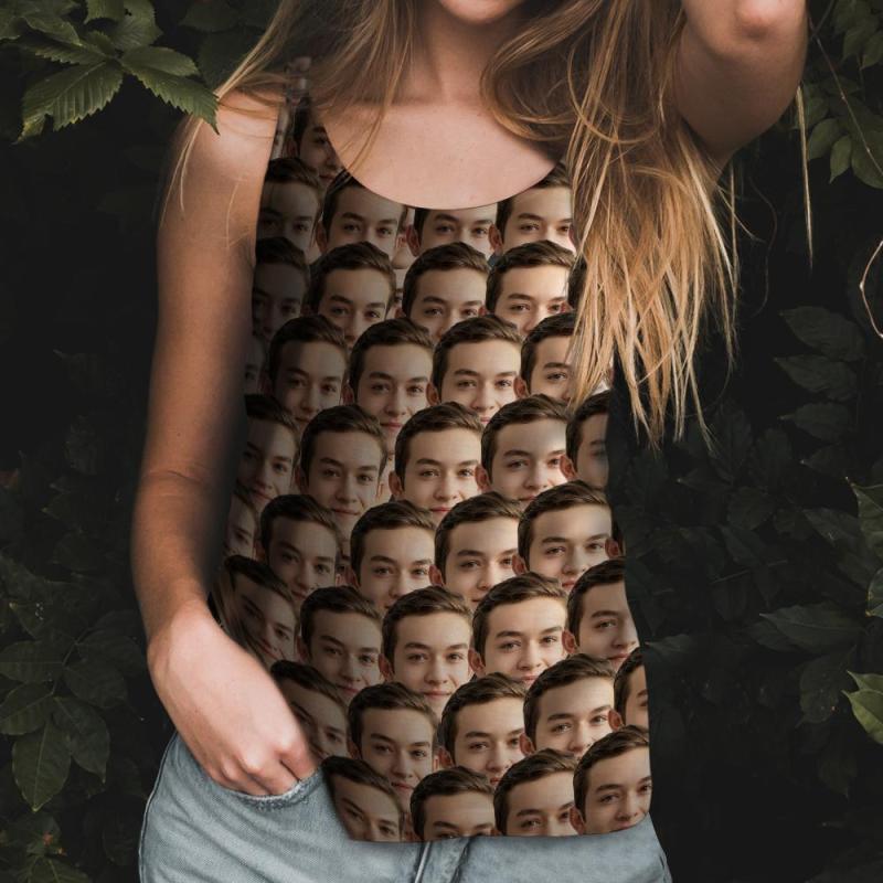 Benutzerdefiniertes Allover-print-t-shirt Mit Mash-face-foto-tanktop