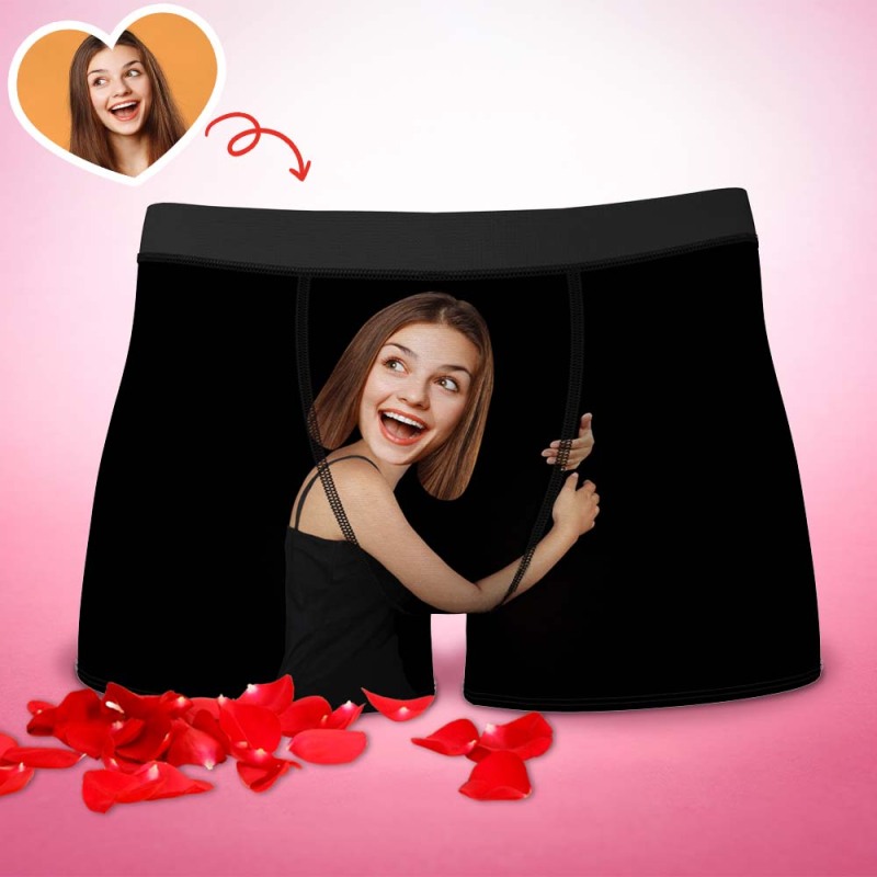 Herren Custom Face On Body Boxershorts Lustiges Gesicht Boxer - Let Me See / Sexy Girl / Hot Dance / Es gehört mir / Nur ich kann es reiten / Comic Mädchenbrille / Pick Up Rock