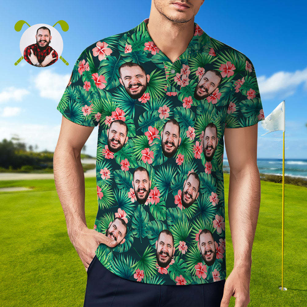 Herren-polo-shirt Mit Individuellem Gesicht, Personalisierte Grüne Golf-shirts Für Ihn, Hawaiianische Rosa Blume