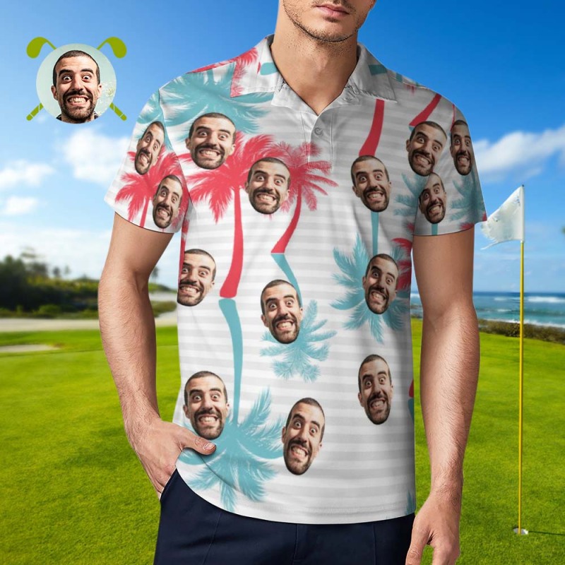 Herren-poloshirt Mit Individuellem Gesicht Im Gestreiften Stil, Personalisierte Hawaiianische Golf-shirts