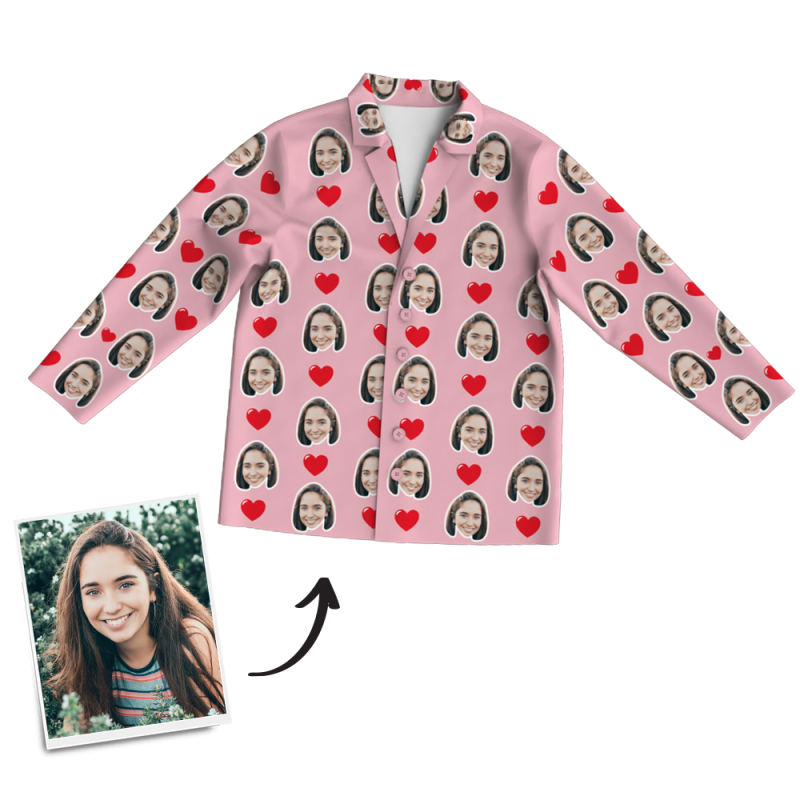Benutzerdefiniertes Foto-langarm-pyjama-oberteil, Nachtwäsche, Nachtwäsche – Herz