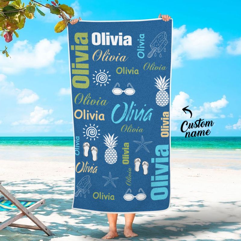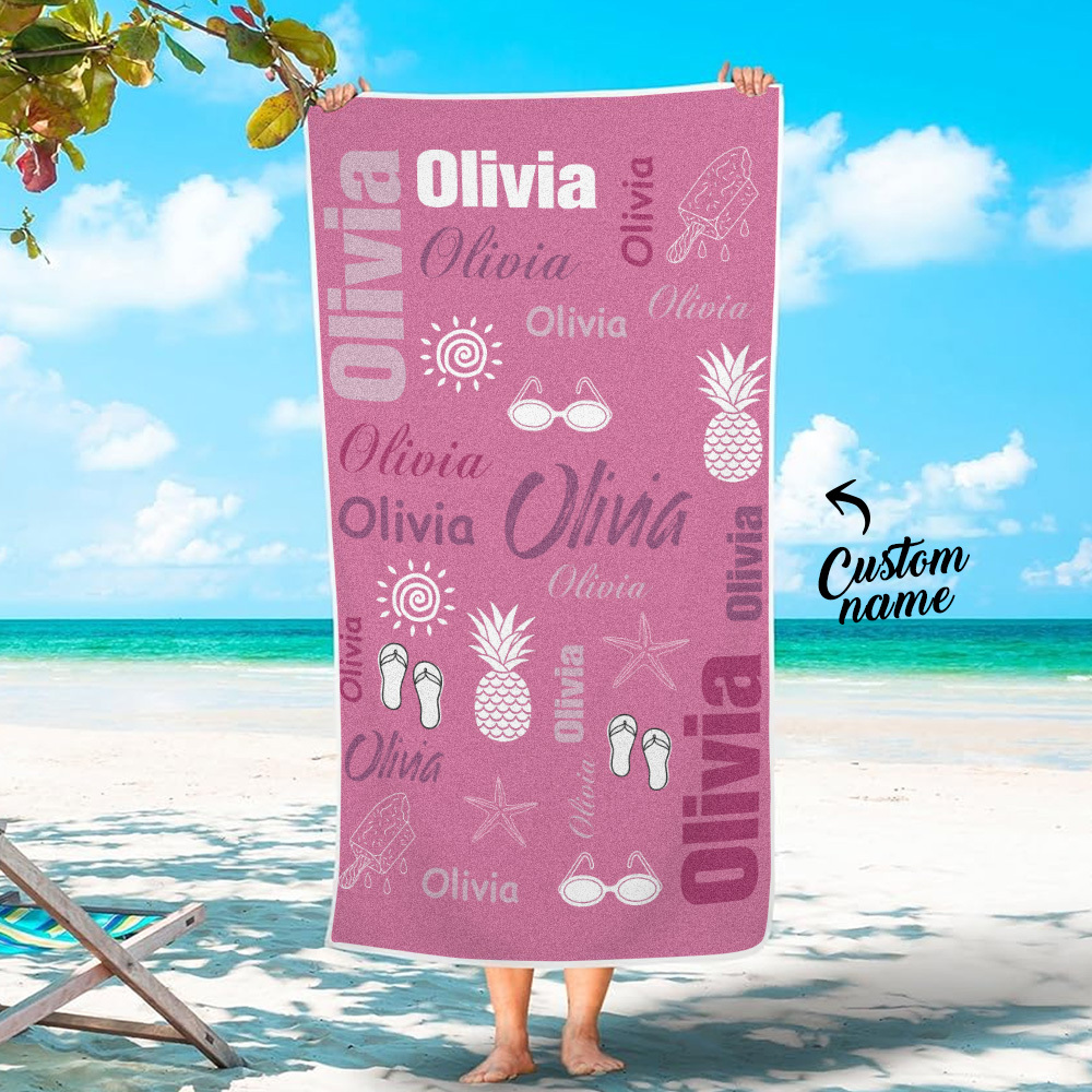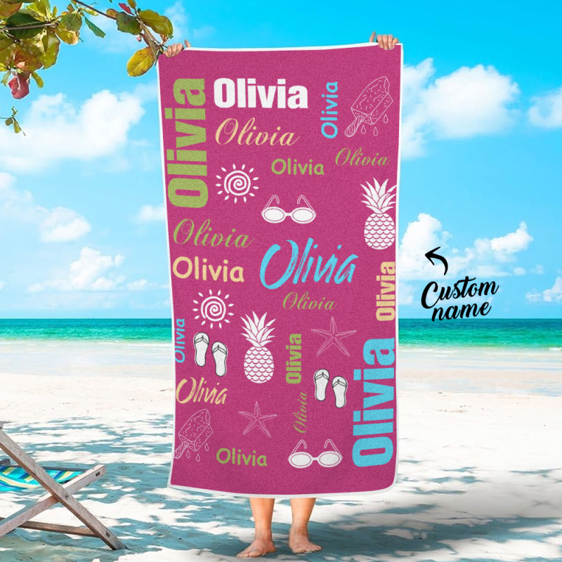 Personalisiertes Buntes Strandtuch Mit Namen, Sommerurlaub, Party-geschenk Für Kinder