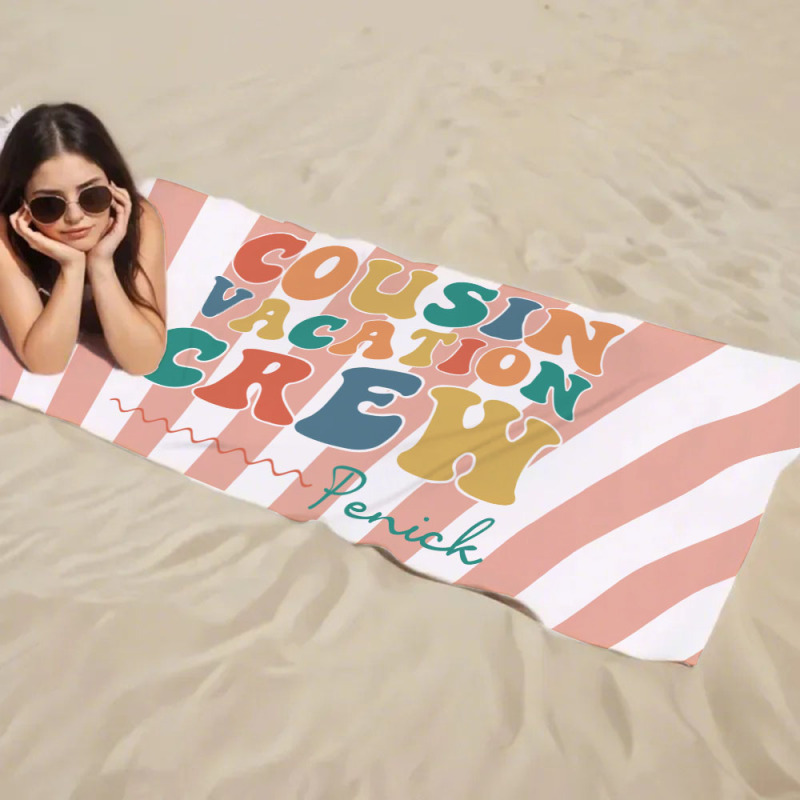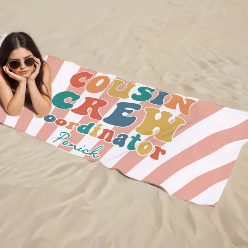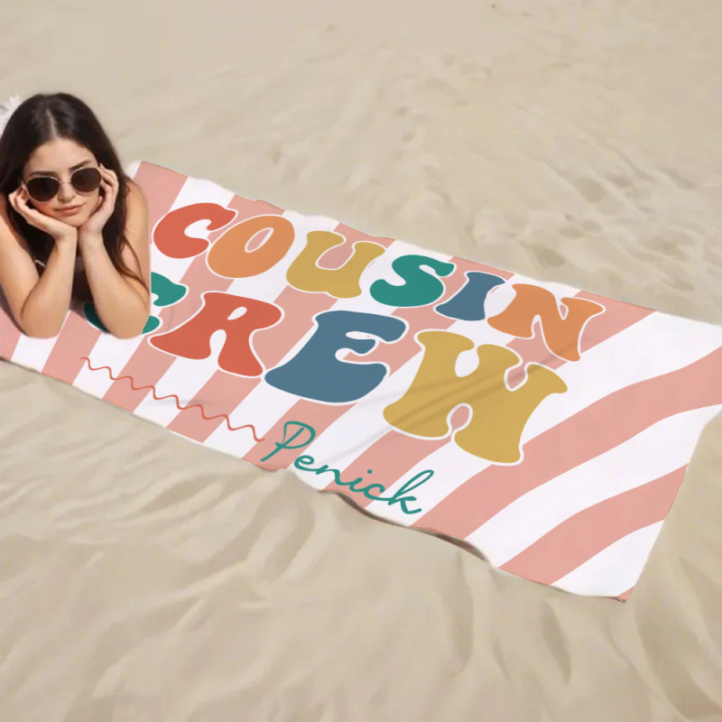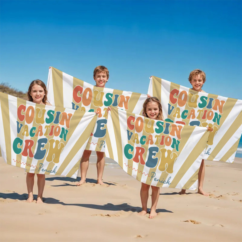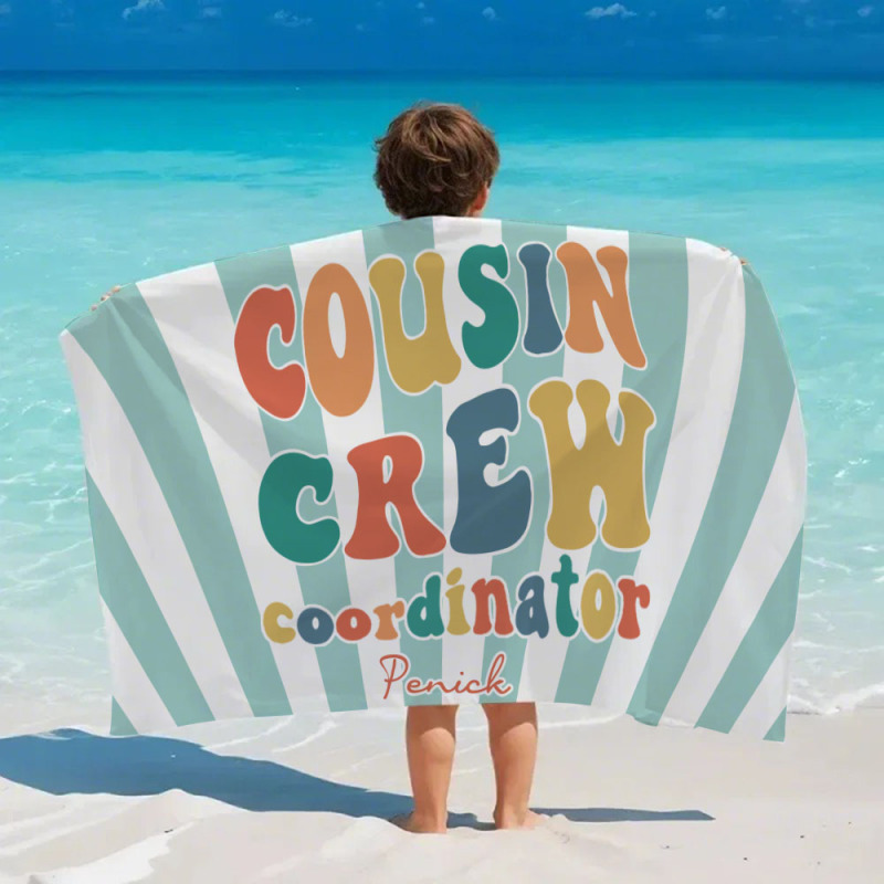 Personalisiertes Cousin-strandtuch, Kinder-badetuch Mit Individuellem Namen, Cousin-urlaub-crew-geschenk, Cousin-familientreffen-geschenk
