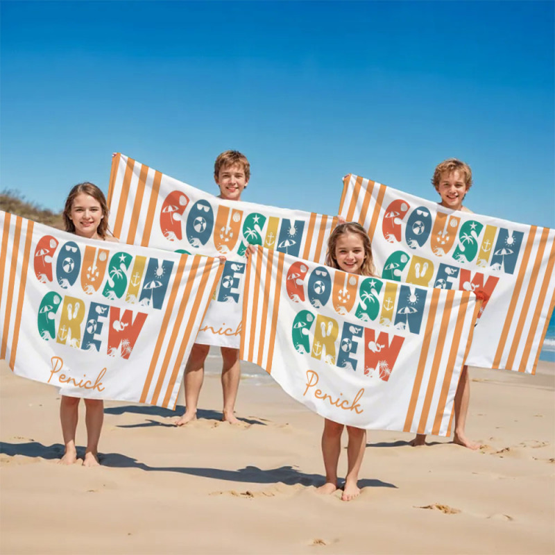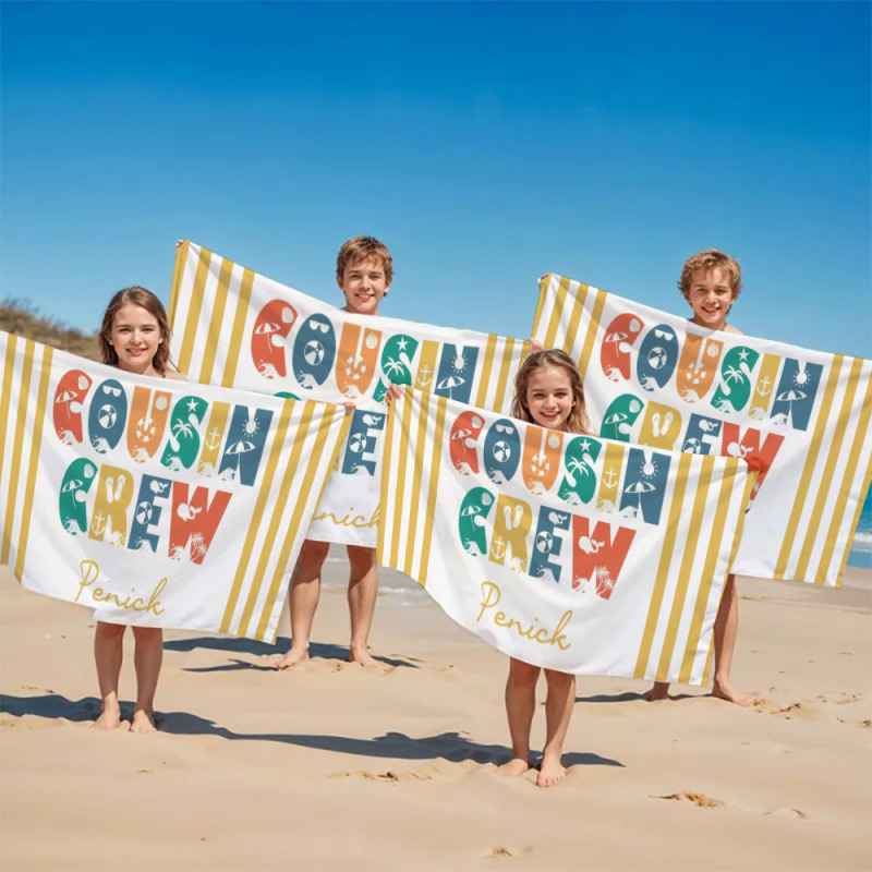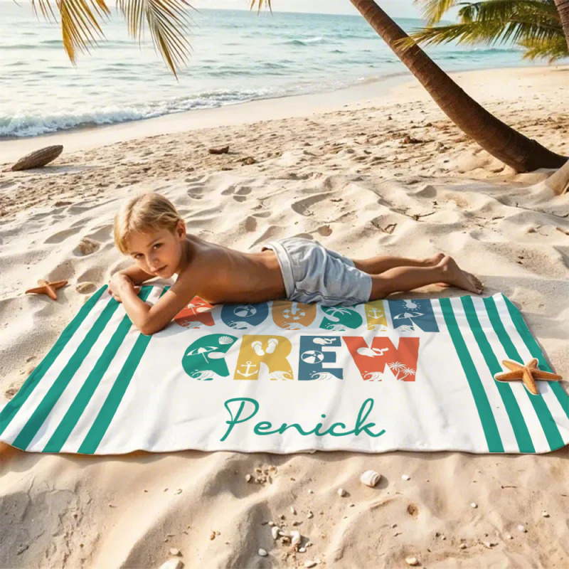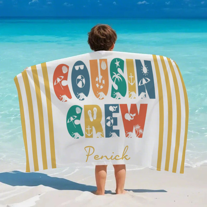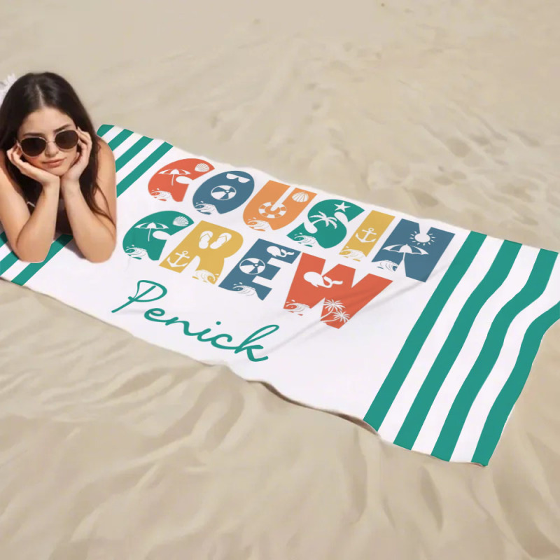 Personalisiertes Cousin-crew-strandtuch, Individuelles Pool-badetuch Mit Namen, Cousin-urlaubsreise-geschenk