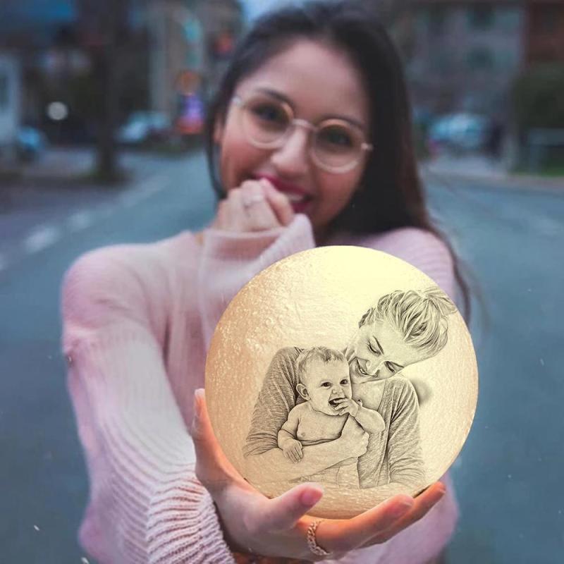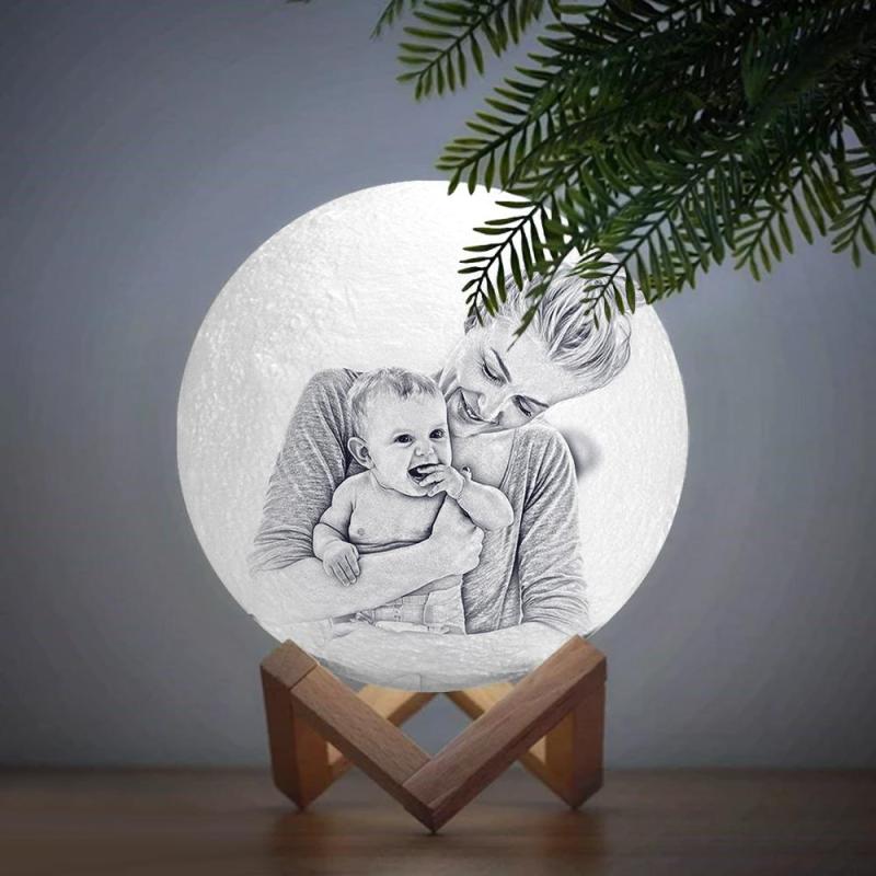Personalisierte Kreative 3d-druck-foto-mondlampe, Gravierte Lampe, Geschenk Für Familie – Berühren Sie Zwei Farben