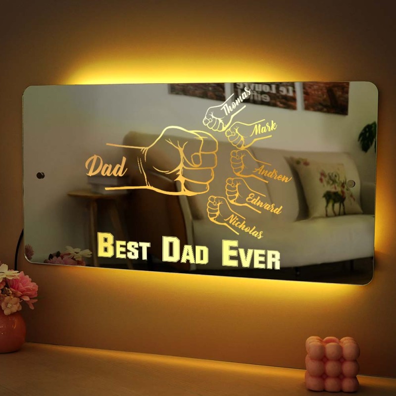 Personalisierte Papa Faust Spiegel Licht Benutzerdefinierte Namen Spiegel Lampe Team Papa Faust Bester Papa Aller Zeiten Wanddekoration Vatertagsgeschenk